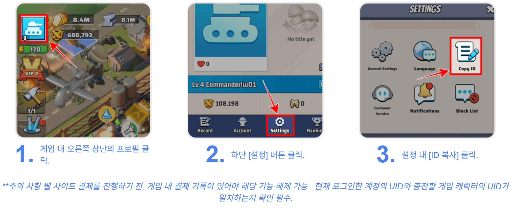 1. 게임 내 메인화면에서 상단에 프로필 터치합니다